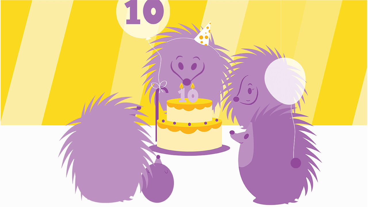 These GIFS are to celebrate the 10-year-anniversary of our brand. They were created to be sent out in an email, used in a presentation, and to be readily available for the team to download and use on their own. I created all illustrations and animations myself.